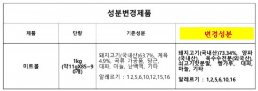 1. 미트볼 성분 변경안내