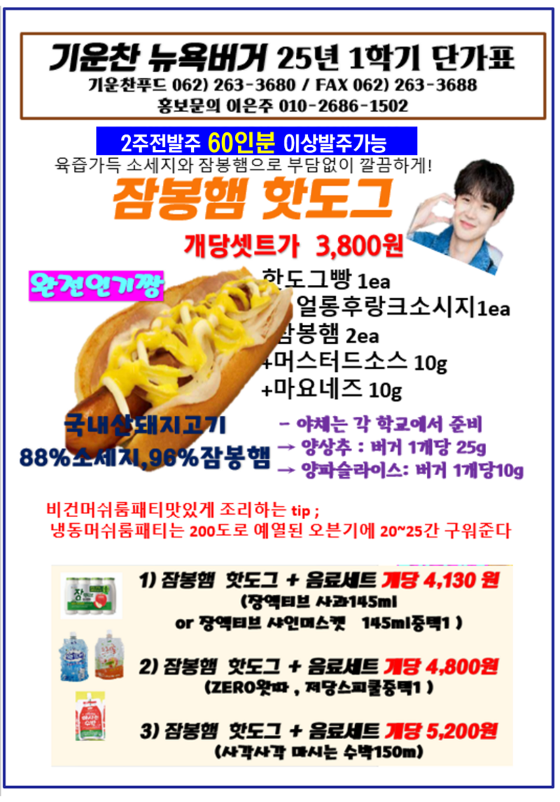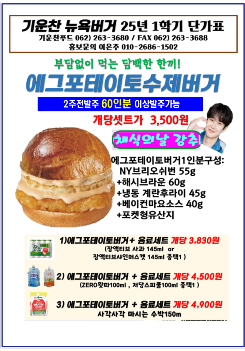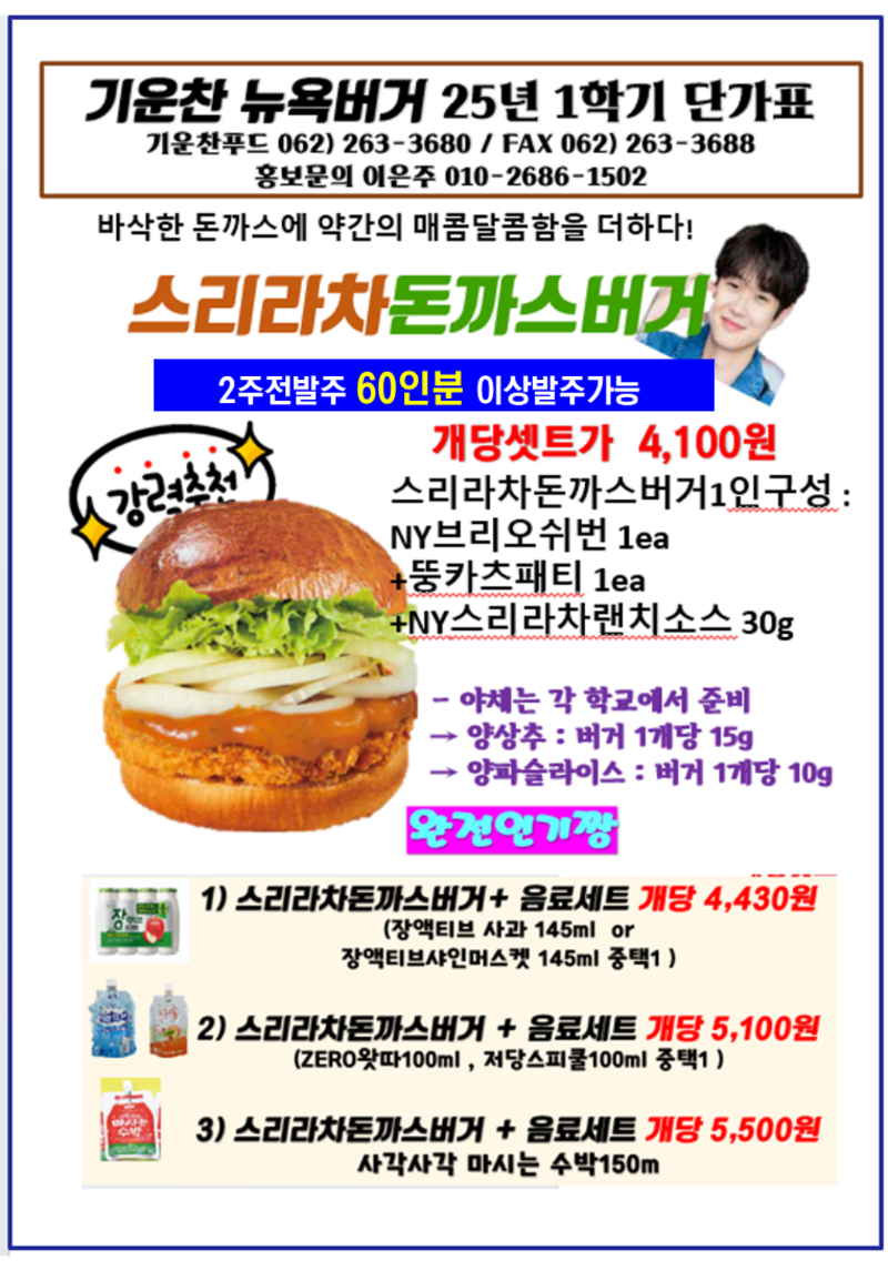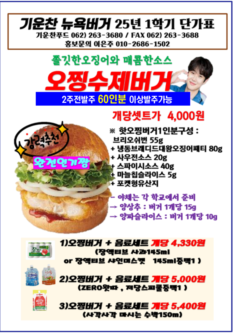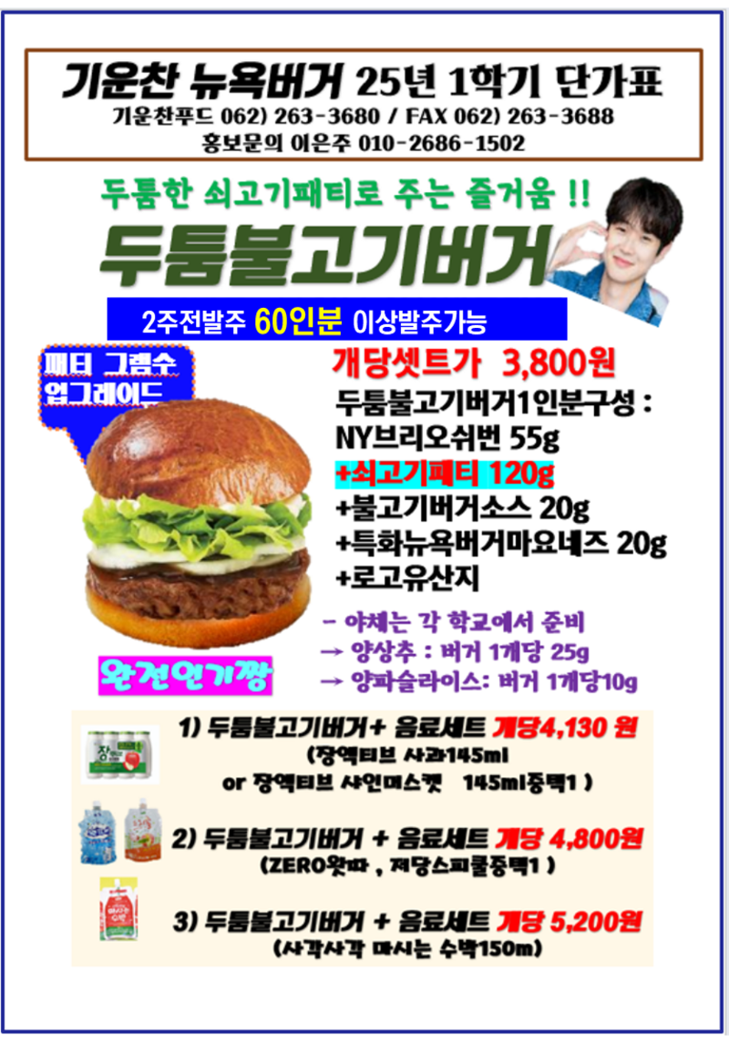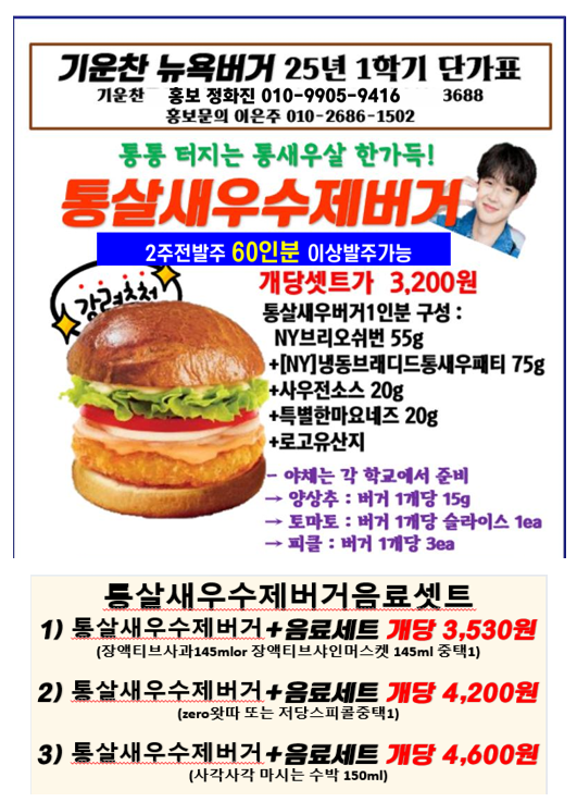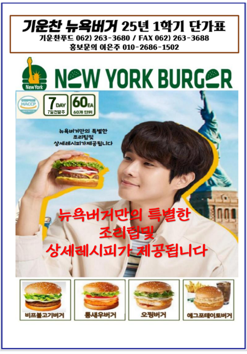 ❤️❤️기운찬 뉴욕버거 7월 단가표❤️❤️