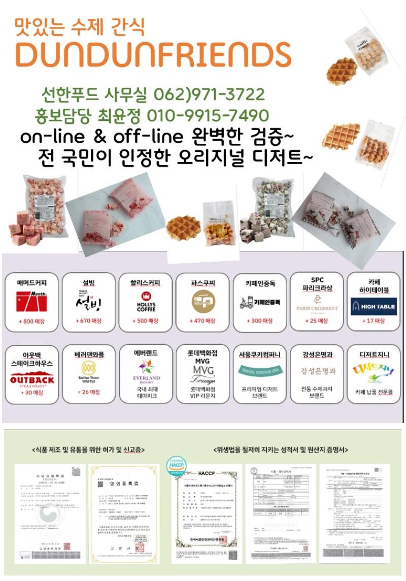 ◆◆선한푸드◆◆맛있는 수제 간식 든든한 친구들 7월 단가표◆◆쫀득쿠키,벨기에식우리밀와플,수제벤티크로플,수제플레인와플.…