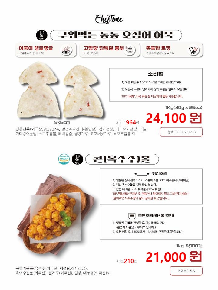 ★★★★ 엘푸드 07월 쉐프타임 학교 단가표 ★★★★