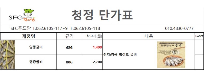 ***SFC푸드맘 청정 7월 단가표 (영광굴비)***