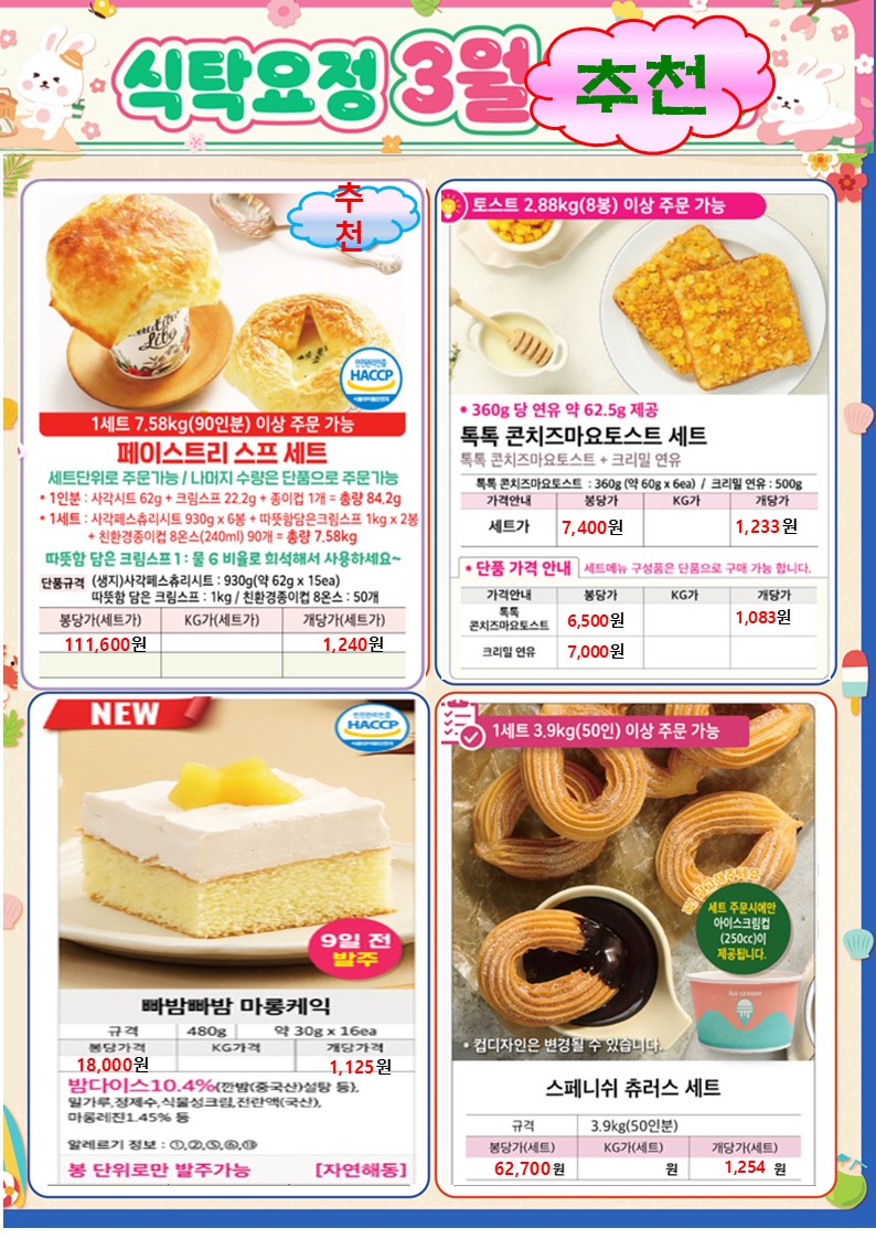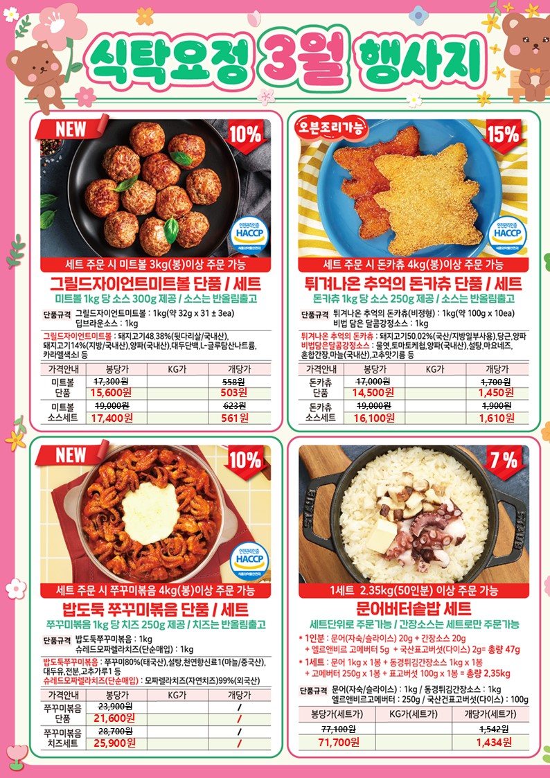 ★★★ 엘푸드 03월 식탁요정 학교 단가표 행사제품 ★★★★