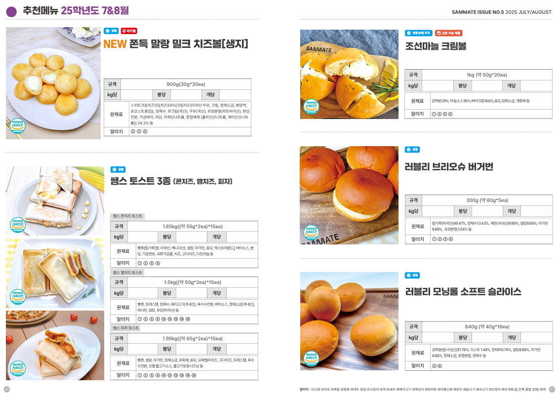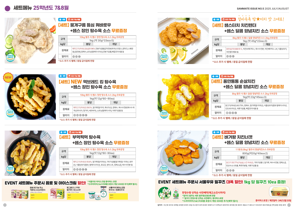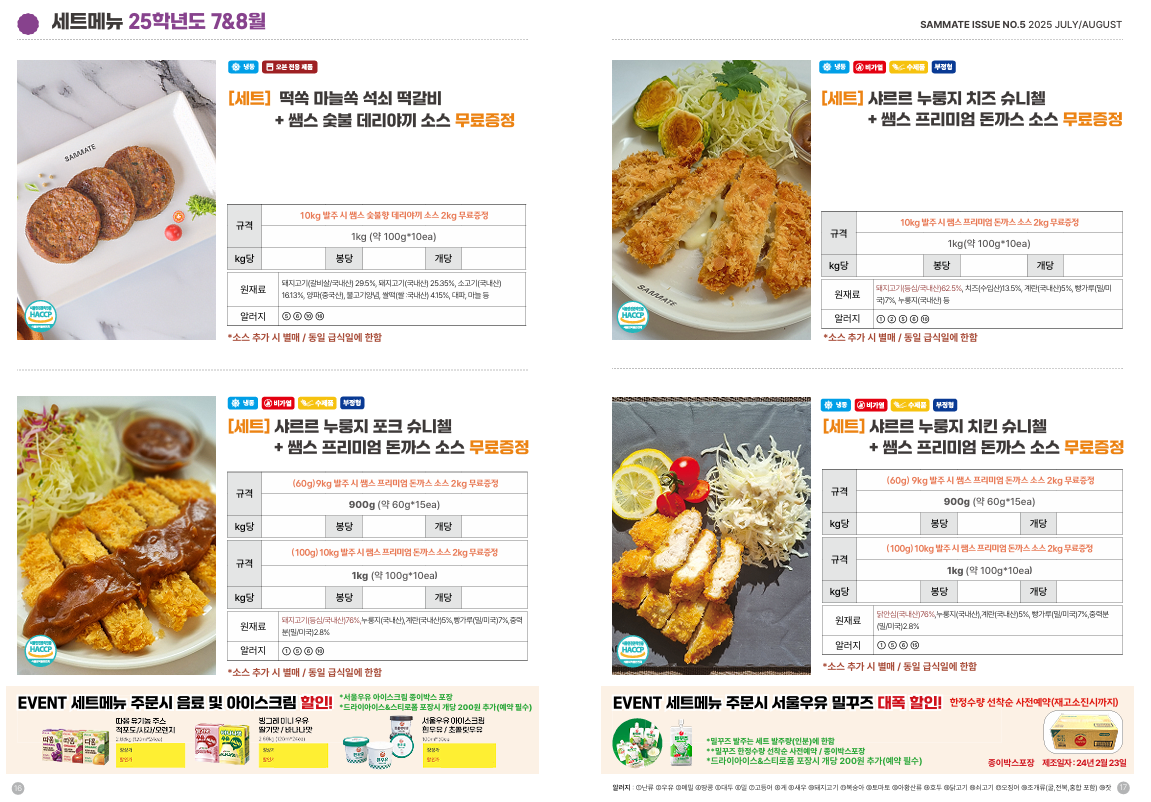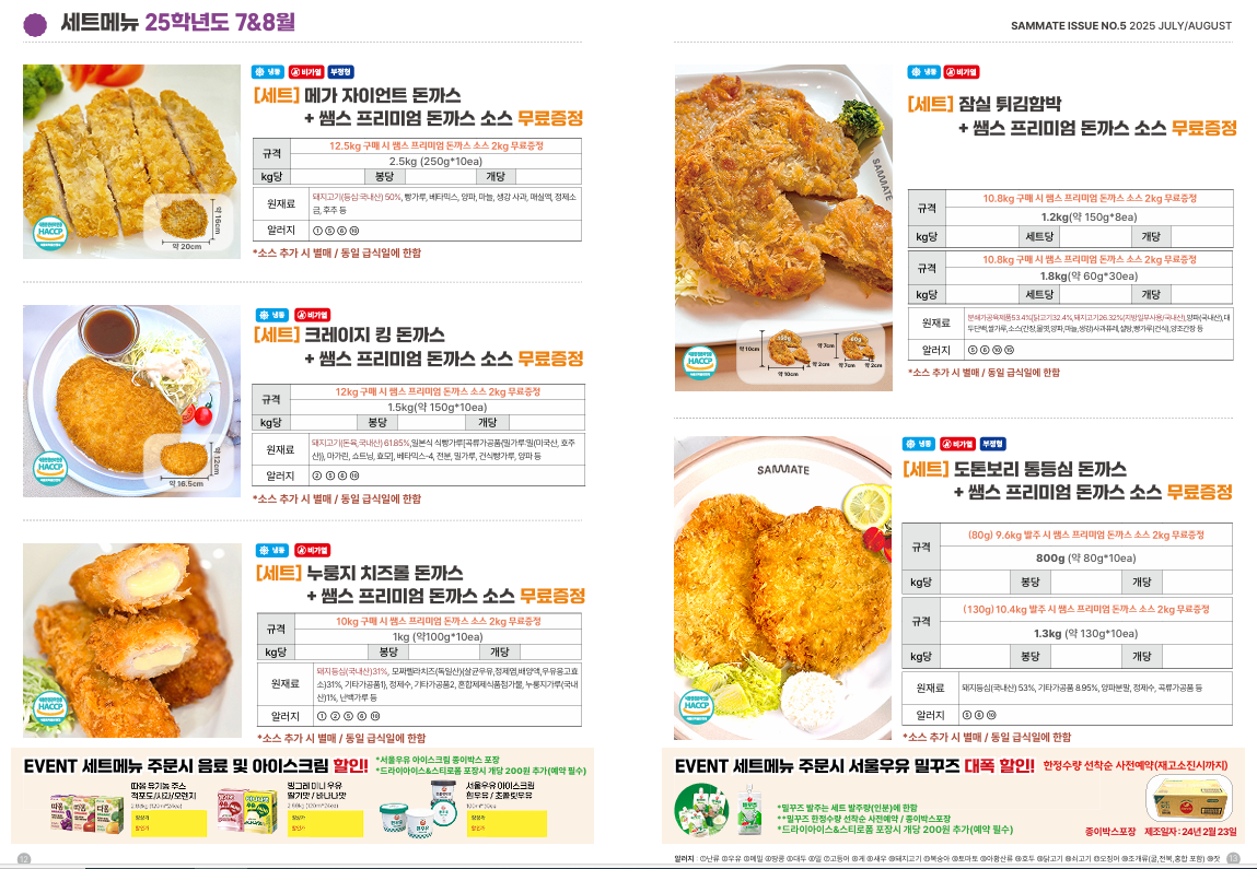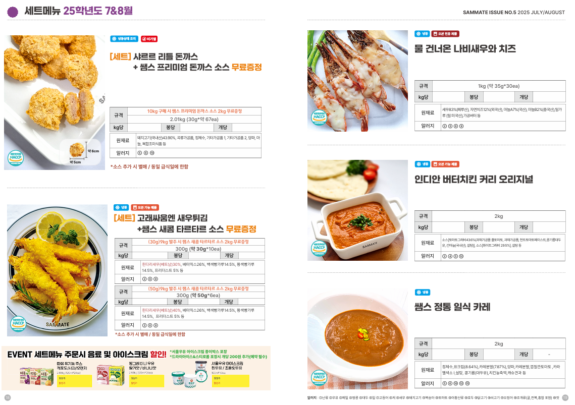 ♥♥한맥푸드♥♥ 쌤메이트 8월 단가표입니다^^