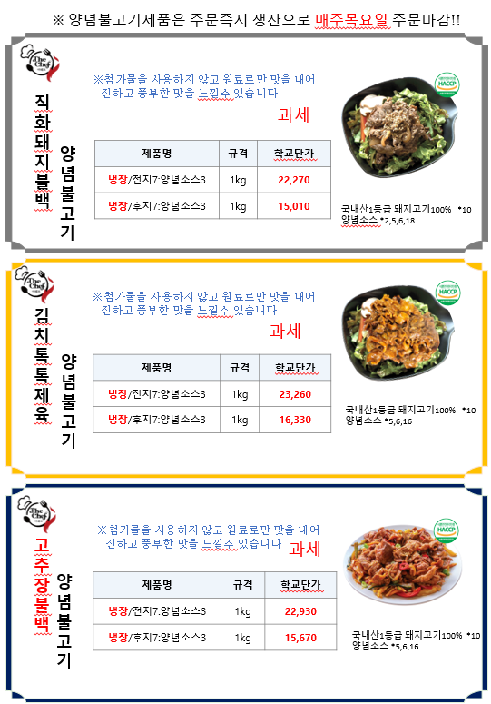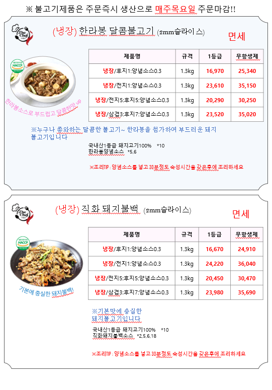 ♥♥한맥푸드♥♥ 더 셰프 8월 단가표입니다^^