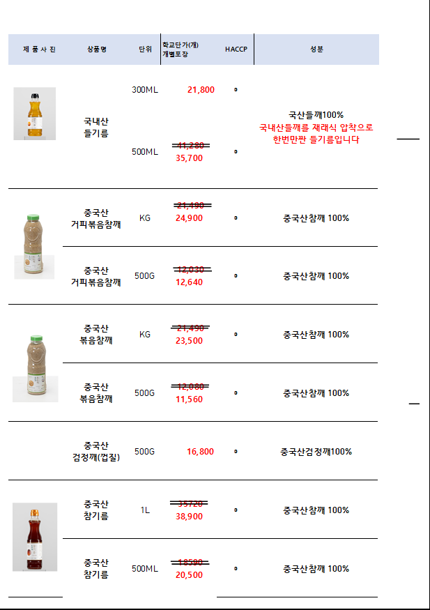 ▨송곡푸드▧ 유씨네 (참깨,참기름) 9월 단가표♥