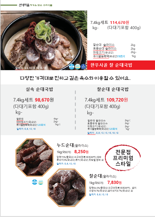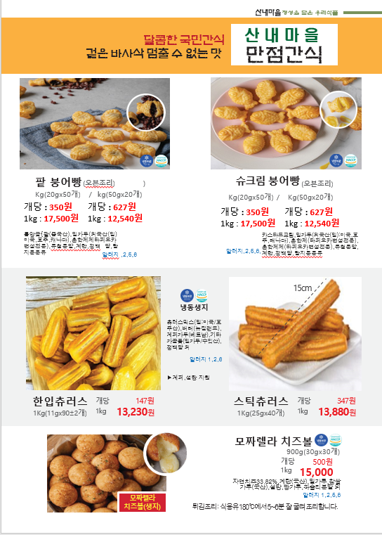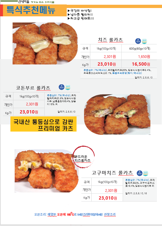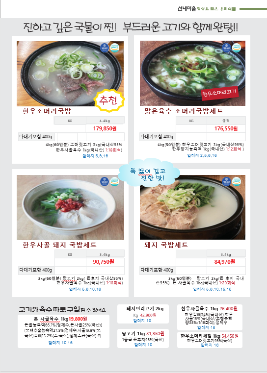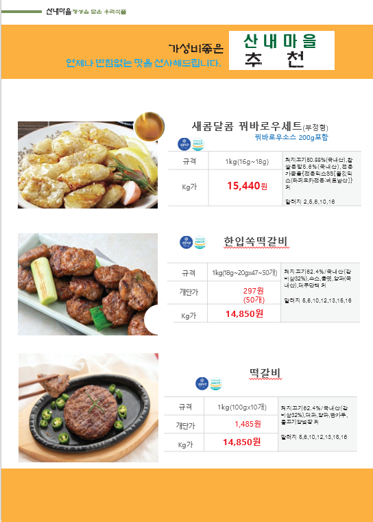 ▨송곡푸드▧ 산내마을 9월 단가표 ♥