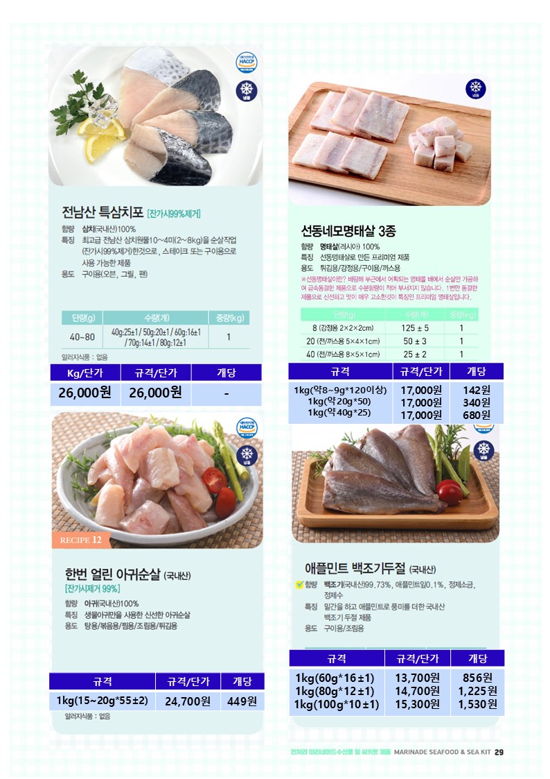 참조은~♠팜앤씨♠[2025년 9월 단가표](피자토핑연어함박,명태까스,광어까스,아귀튀김,깐풍꼬다리,초당옥수수완자전, 쭈구미탕탕이전,연어스테이크,한치깔라마리,감자말이새우,치즈볼,대하새우살,버터플라이적새우,블랙타이거새우, 광어살강정세트,어부의선택해물탕,소라쭈구미채,코다리알탕,생선스테이크,오징어링튀김등)