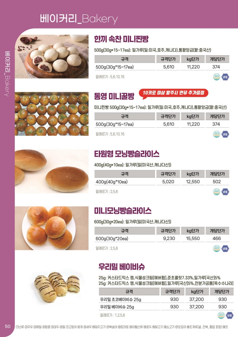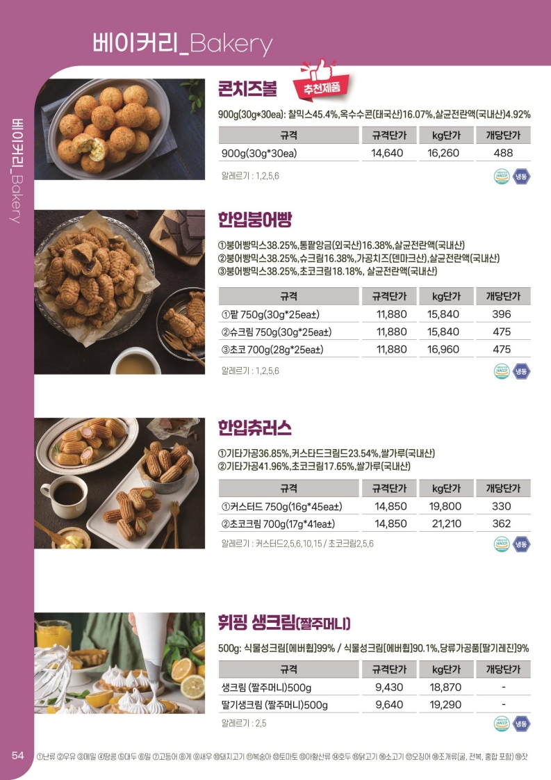 ***SFC푸드맘 리꼬 (마시멜로 크로와상, 타르트, 쉘/도우) 9월 단가표입니다.***