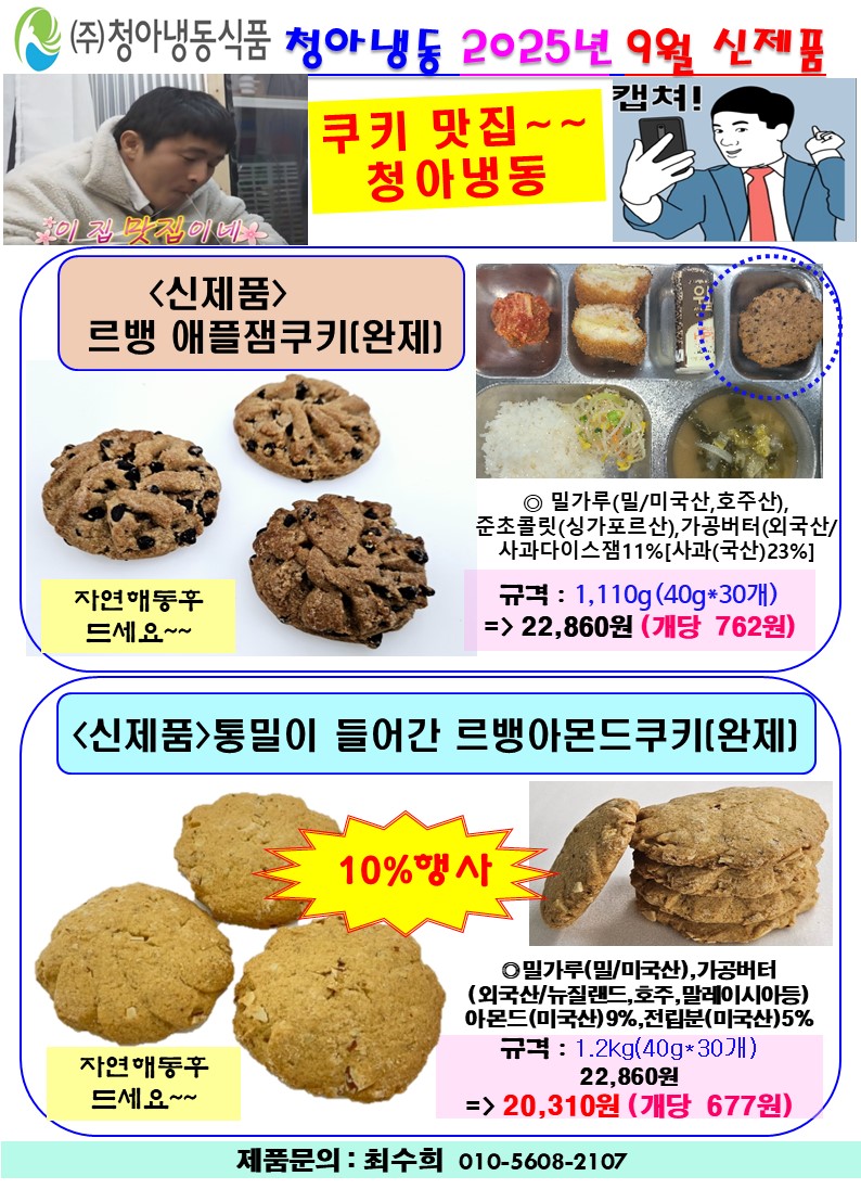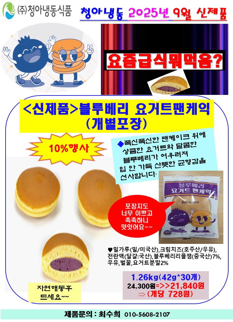 ★☆ 도래샘푸드===>>❤️❤️♠청아냉동♠❤️❤️ 9~10월행사 및 단가표 (아몬드쿠키,블루베리팬케익,씨앗호떡파이)