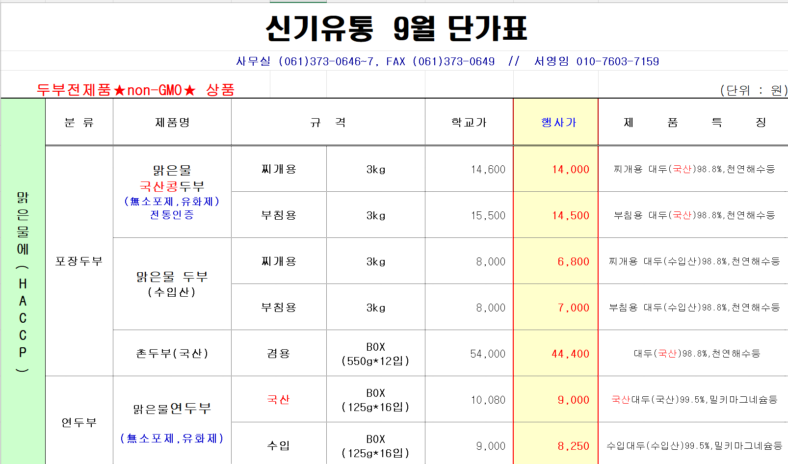 신기유통 9월(맑은물에,오성제과,담양한과,삼육)