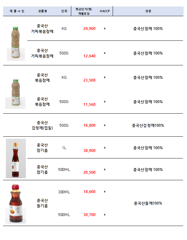 ●●●송곡푸드 - 유씨네 (참깨,참기름) 10월 단가표 ●●●