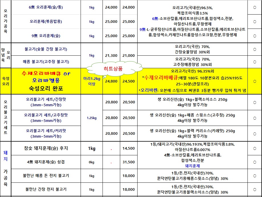 *SFC푸드맘 청정오리 3월 단가표입니다*