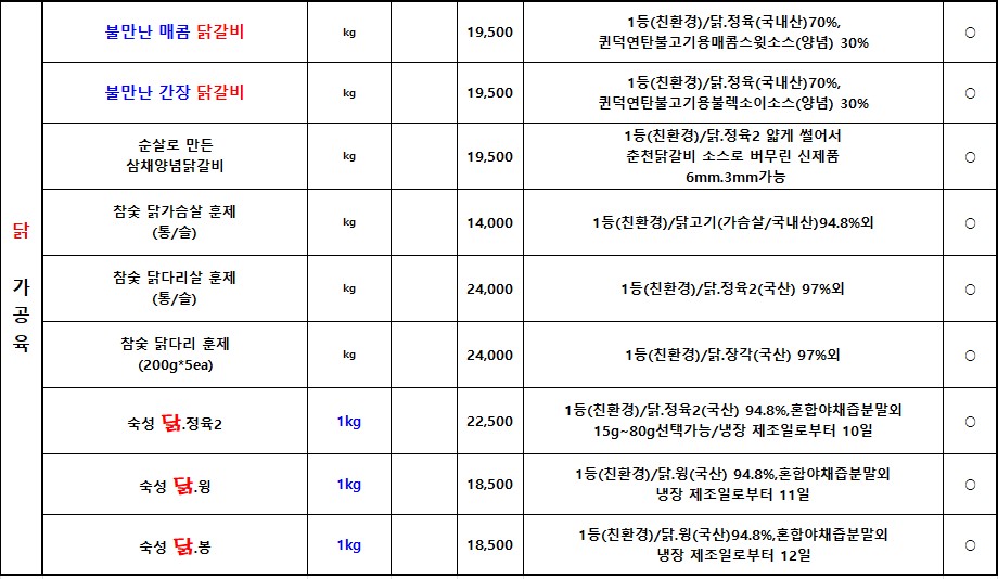 *SFC푸드맘 정닭(정직하고 바른닭) 4월 단가표입니다*
