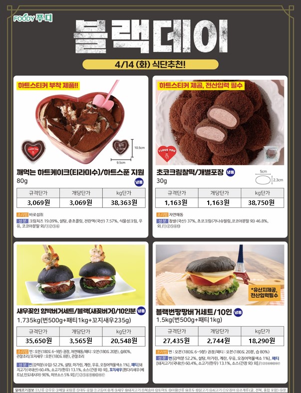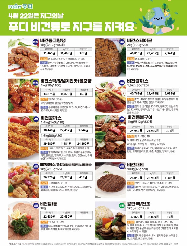 **SFC푸드맘 푸디 4월 단가표입니다.(추천단가포함)**