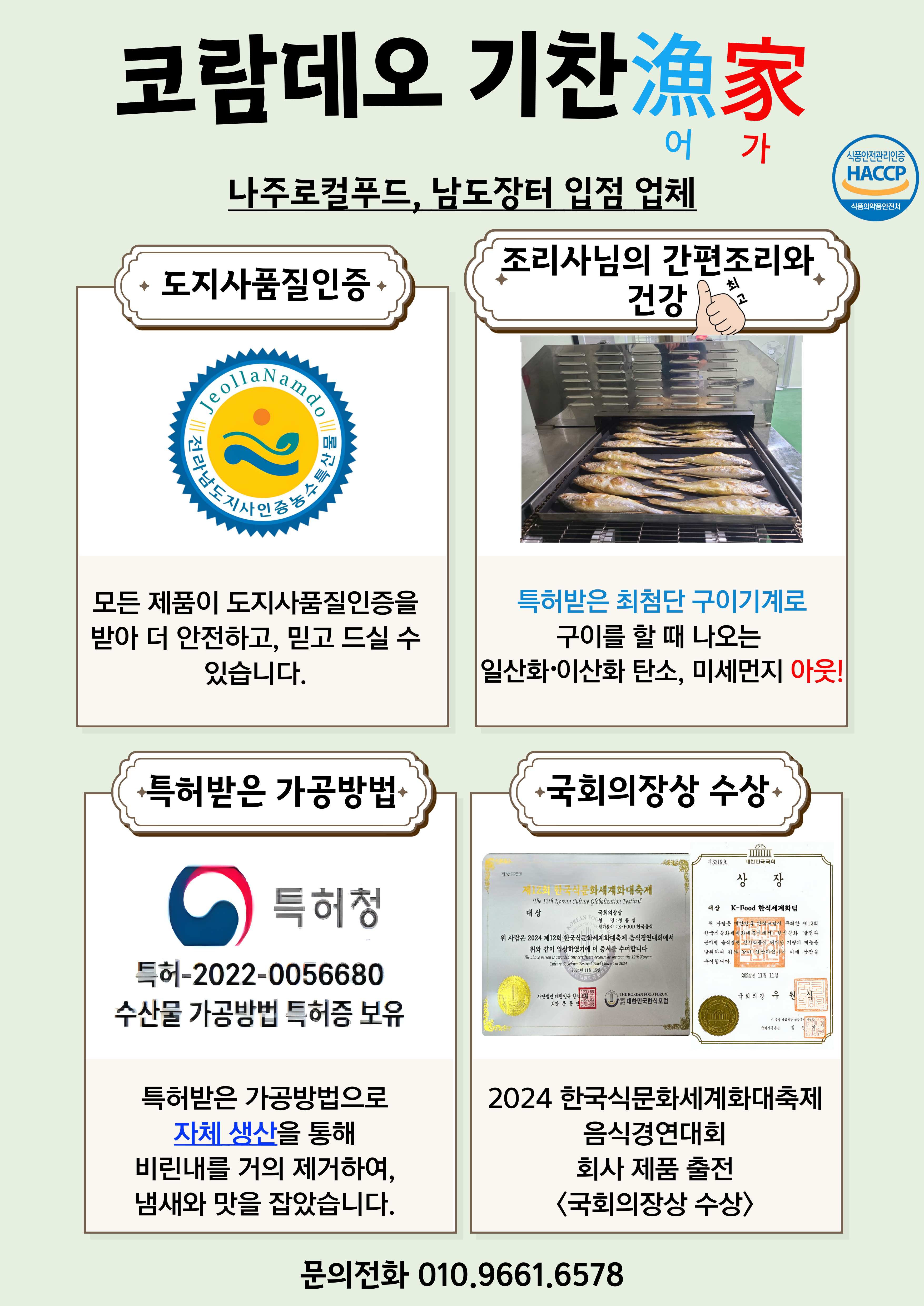 HACCP인증 시설로 전남도지사품질인증을 받아 믿고 드실 수 있는 회사입니다.