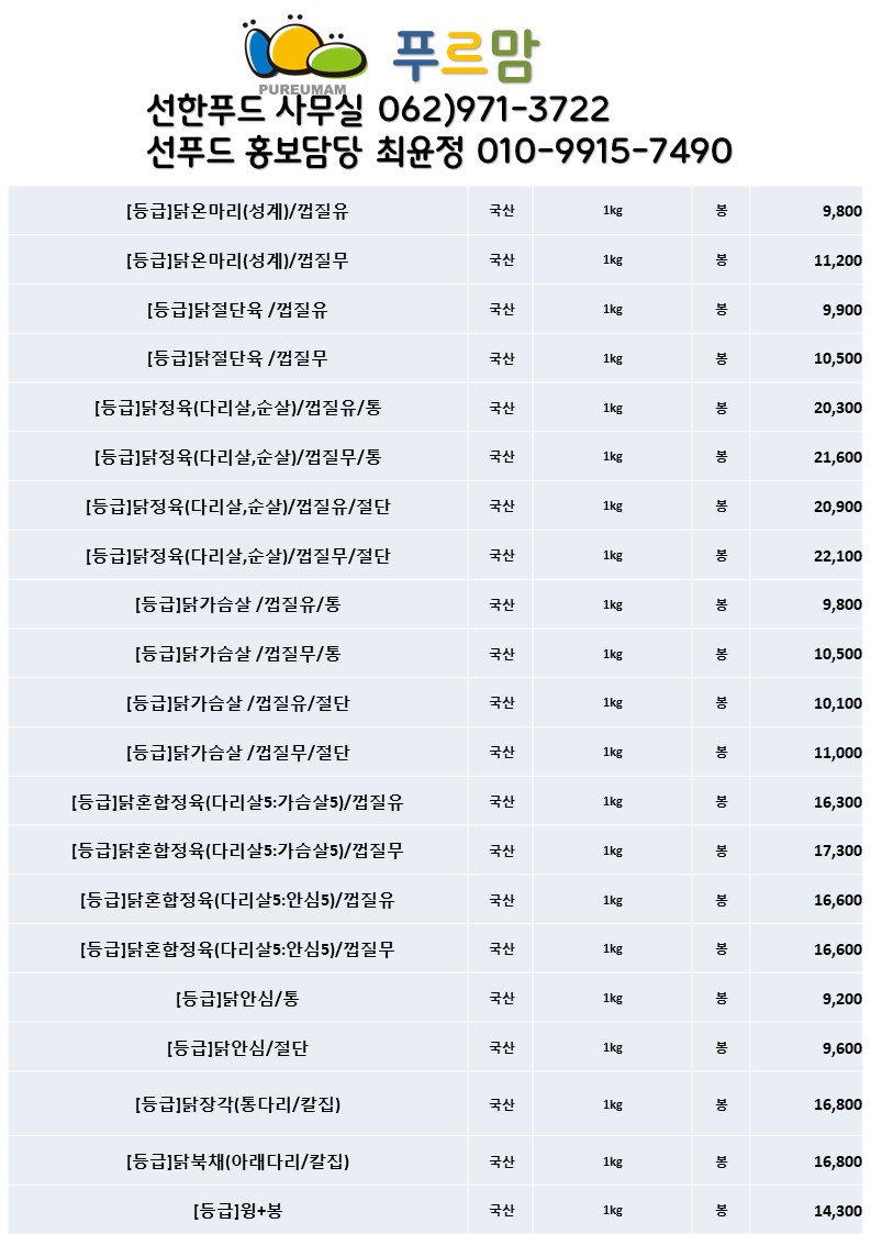 - 푸르맘 닭고기 변동가.xlsx [size : 13.4 KB] [다운로드 : 2]