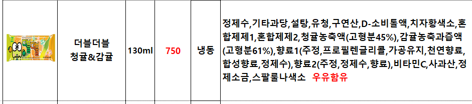 서주아이스크림 - 더블더블 청귤&감귤 제품이 8월 18일부로 중단